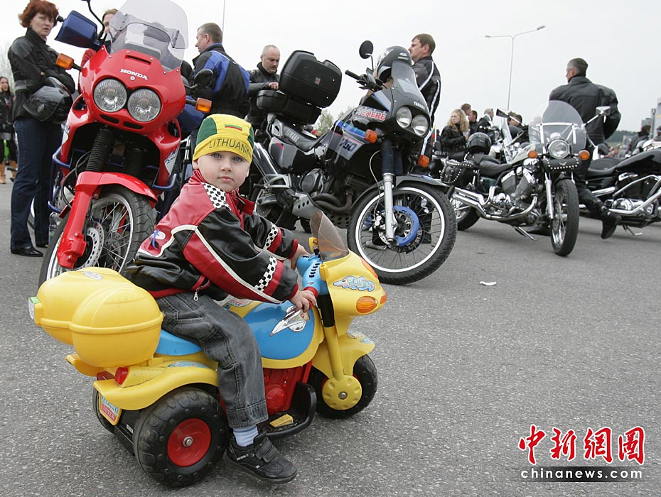當地時間5月1日,陶宛首都維爾紐斯市,數千摩托手舉行了機車大游行。圖片來源:中國新聞網