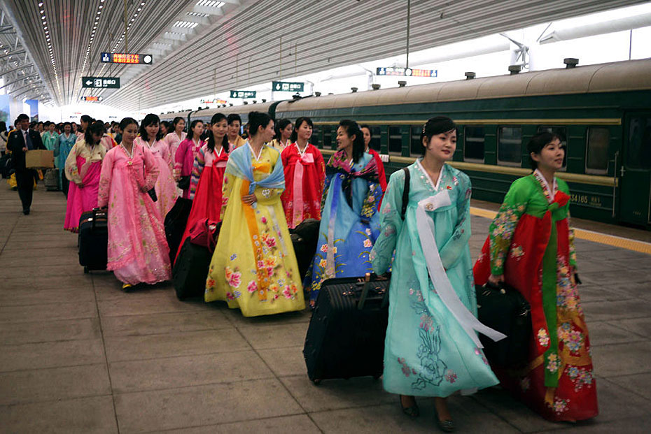 5月2日,載著198名朝鮮紅樓夢劇組演員的專列駛入丹東口岸。由朝鮮國家級藝術團-血海歌劇團創(chuàng)作的歌舞劇《紅樓夢》將于5月6日至9日登陸北京電視臺大劇院,這個超大演員陣容亦創(chuàng)下近年來華國外演出人數(shù)之最。圖片來源:新華網(wǎng)