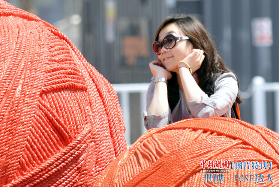 逛世博一定會拍照留念,擺一個漂亮有創意的pose尤為重要。面對著鏡頭,挺胸收腹翹臀,一個微笑,一個手勢,秀出自己的活力。心中一定要默念:“我留下的不是照片,是心情!”。用手托腮,做花朵狀是標準的可愛造型。中新網記者 王紅綱 攝