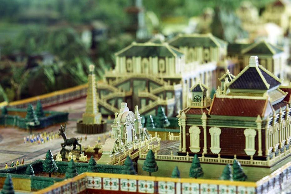 5月4日,游客在參觀縮微版“圓明園”。近日,一座“全景式巨型立雕圓明園”在上海世博會世界貿易中心協(xié)會館亮相。這座縮微版的“圓明園”以1比150的比例制作而成,再現了全盛時期的圓明園雄偉壯觀的全景。圖片來源:新華網 裴鑫 攝