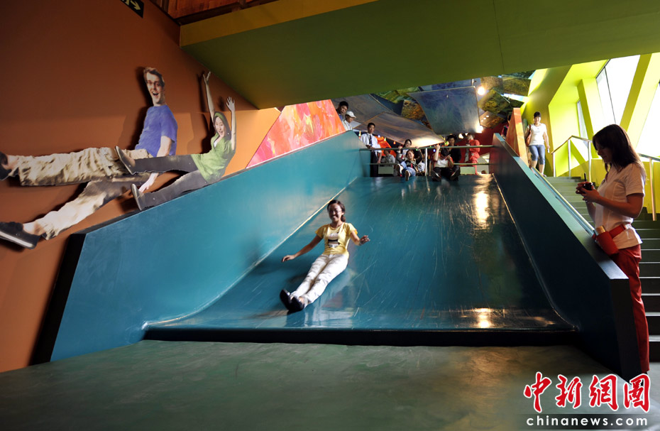 不愿走樓梯下樓的,還可以直接滑梯下來,一些成年人也紛紛找到了童年時的歡樂。中新網記者 王紅綱 攝