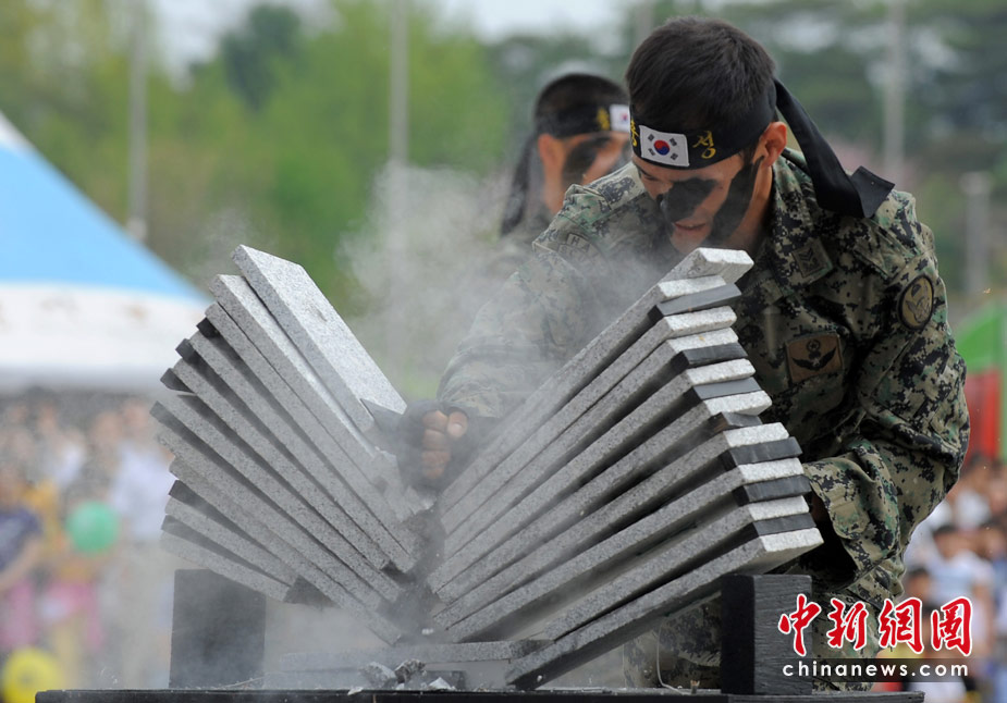 5月5日,韓國兒童節(jié),韓國突擊隊員在國家戰(zhàn)爭博物館為孩子們表演。