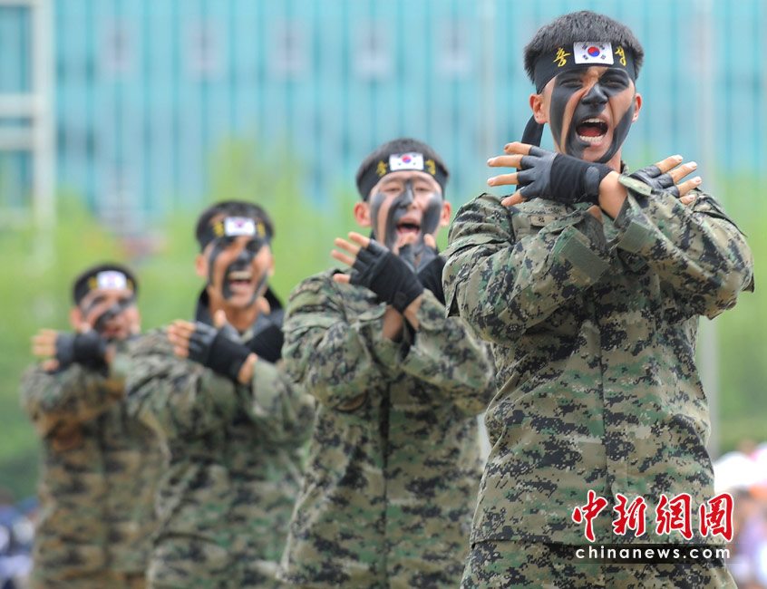 5月5日,韓國(guó)兒童節(jié),韓國(guó)突擊隊(duì)員在國(guó)家戰(zhàn)爭(zhēng)博物館為孩子們表演。