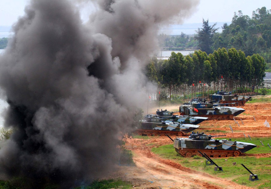 登陸作戰實兵實彈演練。圖片來源:新華網 查春明攝
