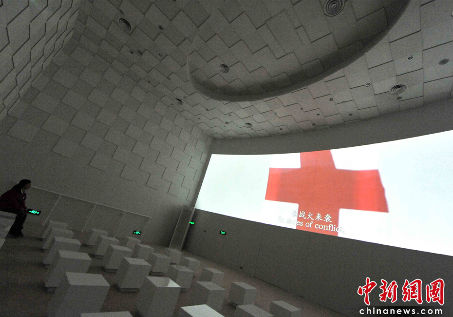 5月8日是上海世博會的紅十字會和紅新月會館榮譽(yù)日,兩會在簡樸如醫(yī)療帳篷的館里,運(yùn)用聲光電展示大量紀(jì)實(shí)圖片,于大災(zāi)大難中顯示救死扶傷的大愛,可歌可泣。這兩個鮮紅標(biāo)志的人道救援組織,一百多年來遵循著堅(jiān)定不移的宗旨——“經(jīng)歷戰(zhàn)爭與災(zāi)難的黑暗,我們更需要人道的光芒”。世界的未來,還將依靠它紅色的光明,去驅(qū)散天災(zāi)人禍的陰影。中新社發(fā) 賈國榮 攝