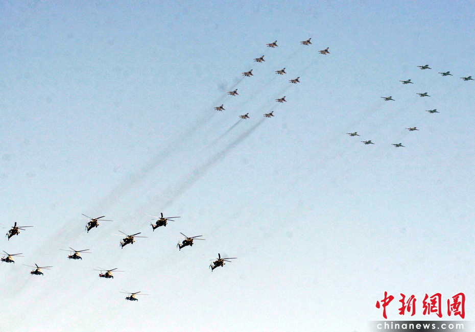 5月9日,俄羅斯在莫斯科紅場舉行盛大的閱兵式,慶祝衛國戰爭勝利65周年。莫斯科時間5月9日上午10點(北京時間9日下午2點)許,閱兵式正式開始。在空中閱兵部分,12架米格-29殲擊機和11架蘇-25強擊機編隊在空中分別組成“6”和“5”的數字圖案,寓意衛國戰爭勝利65周年。中新社發 田冰 攝
