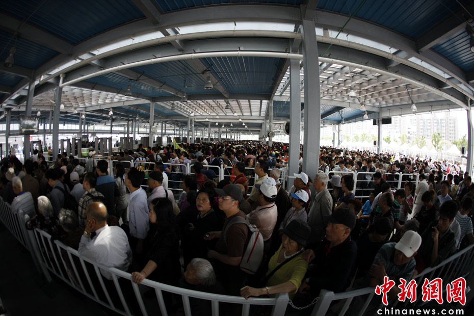 圖為排隊(duì)進(jìn)入園區(qū)參觀(guān)的游客。中新社記者 盛佳鵬 攝