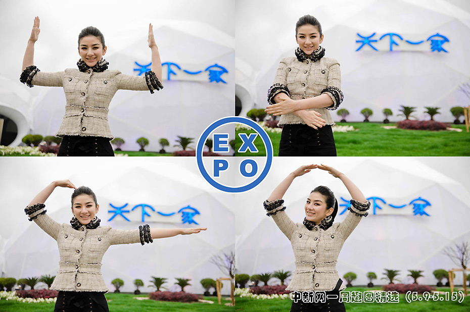 日前上海女孩黃奕來到世博館“天下一家”未來館門口拍攝一組手勢大片,身體力行教大家如何演繹EXPO的含義。圖片來源:中國新聞網>>點擊觀看詳細內容