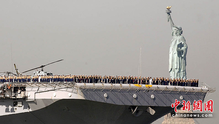 當地時間5月26日,美國第23屆紐約艦隊周開幕,包括“硫磺島”號兩棲攻擊艦在內的11艘參加艦隊周活動的軍艦由南向北在哈得孫河面上游弋。紐約民眾將以?吭诼D哈得孫河86號碼頭的“無畏號”航母博物館為中心,展開為期一周的慶祝和紀念活動。圖片來源:中國新聞網