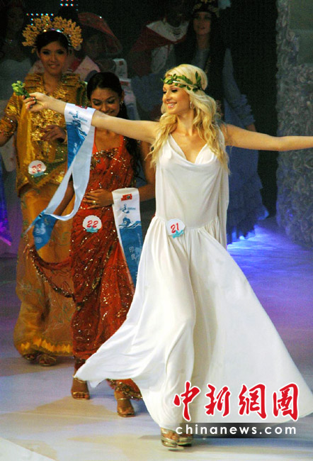 5月29日晚,第35屆國(guó)際比基尼小姐全球總決賽在三亞“美麗之冠”落下帷幕,22歲的羅馬尼亞選手Diana Irina Boanca摘得冠軍。總決賽還評(píng)選出了四季小姐,18歲的中國(guó)選手趙茜獲得“秋季小姐”,澳大利亞、委內(nèi)瑞拉和拉脫維亞選手分別獲得春、夏、冬季小姐。共有來(lái)自世界各地的64位佳麗參加了總決賽的角逐。當(dāng)晚,佳麗們展示了各自國(guó)家或地區(qū)特色的民族服飾,用不同的方式展示了不同風(fēng)格的比基尼“秀”,性感迷人。 中新社記者 尹海明攝
