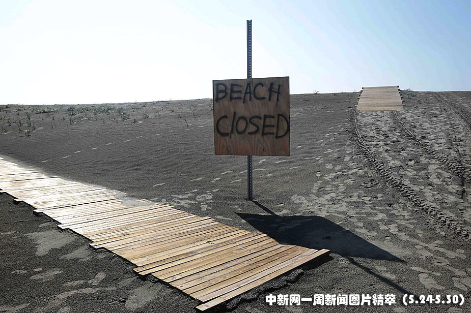 照片攝于美國路易斯安那州發現之島,受墨西哥灣原油泄漏事故的影響,該島的海灘已被關閉。