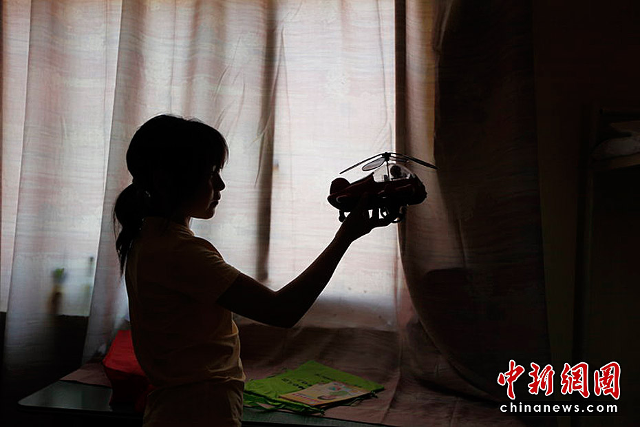 5月30日,河南新鄉市太陽村,服刑人員子女的兒童節。圖為孩子在玩兒受捐助的玩具飛機。拂曉/CFP
