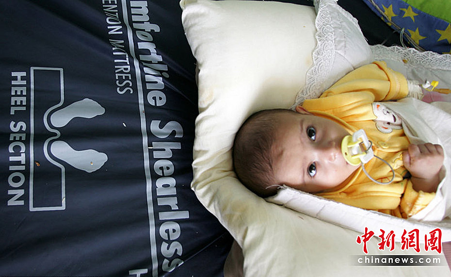 圖為費盧杰(Falluja )綜合醫院里的一位伊拉克兒童患者。據當地醫生得知,近期患有先天性缺陷的兒童的數量急劇激增。圖片來源:CFP