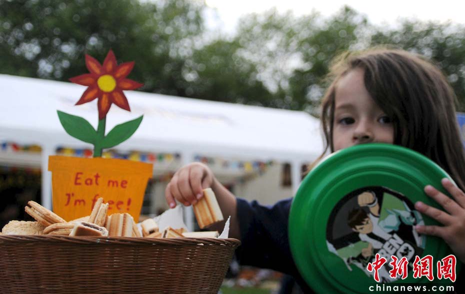 當地時間2010年6月6日,英國倫敦舉行卡姆登綠色市集(Camden Green Fair),這是英國倫敦每年環保領域的“重頭戲”。本屆市集的主旨是要喚起大眾對環境問題的關注,選擇更加可持續發展的生活方式。據活動主辦方預計,本屆市集將吸引來自英國各地和世界各國的2萬多人參加。圖為免費的素點心深受小朋友喜愛。Fiona/攝 Fiona 馬小剛/文