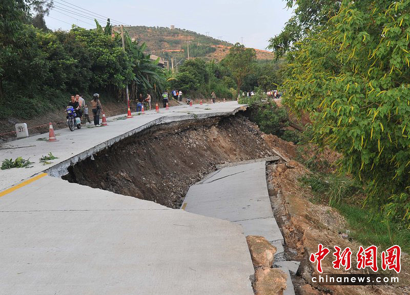 6月8日下午4點半,福建閩侯白沙鎮115縣道31公里處路面發生塌陷,路面整體下陷20多米,路基裂痕長達百米,所幸無人傷亡。圖片來源:CFP