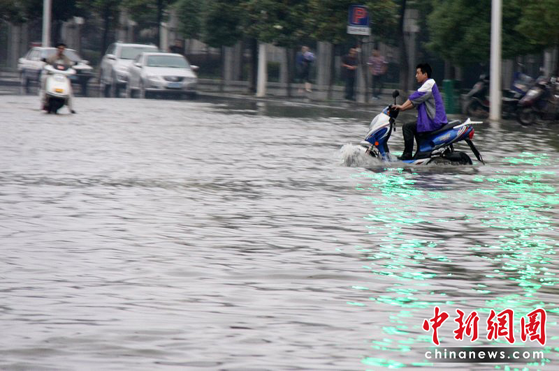 6月8日,在江西瑞昌市街頭,行人在積水中艱難前行。自6月7日夜間開(kāi)始,江西九江市持續(xù)遭受暴雨襲擊,各縣、區(qū)24小時(shí)的平均降雨量在80毫米左右,最大降雨量在廬山區(qū)達(dá)到134毫米。魏東升 胡國(guó)林/CFP