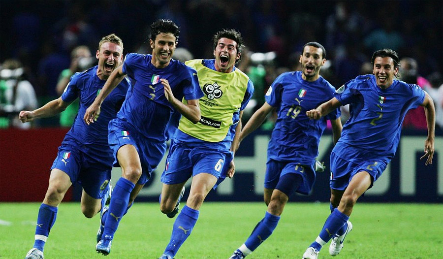 2006年意大利奪冠,后來多被定義為“庶民的狂歡”或“精神的勝利”。在電話門的陰霾中,里皮帶著一幫并無太多星光的球員,以戲劇性的方式問鼎。當然,決賽里齊達內用頭頂翻馬特拉齊的一幕讓人難以釋懷,一代球星以這樣的方式結束了職業生涯。