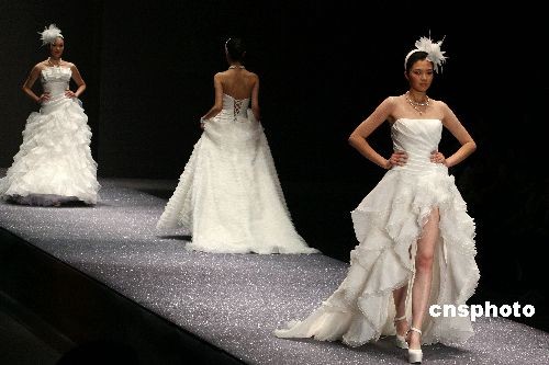2008年11月7日,中國(guó)國(guó)際時(shí)裝周(2009春夏)舉行“名瑞杯”2008中國(guó)婚紗設(shè)計(jì)大賽(Famory Cup China Wedding Dress Design Contest 2008)。共有來(lái)自14個(gè)地區(qū)的25份稿件入圍了最后的決賽,角逐此次大賽的各個(gè)獎(jiǎng)項(xiàng)。經(jīng)典的白紗和今年非常流行的蕾絲面料是主角,選手們用了層疊,堆積的表現(xiàn)手法,使得并不新穎的面料有了新鮮的感覺(jué),給人們?cè)斐刹煌模貏e的視覺(jué)效果。自由設(shè)計(jì)師吳小珍的作品《女人花》最終獲得金獎(jiǎng)。中新社發(fā) 魯谷 攝