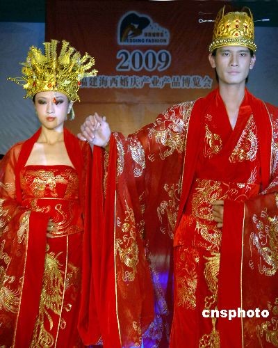 三月十三日,一名女模特在福建婚博會現場婚紗秀上展示婚紗,婉約可人。當日,二○○九福建海西婚慶產業產品博覽會在榕開幕,展出面積近六千平方米,包括臺資企業在內的婚慶商家五十余家參加了展會。中新社發 劉可耕 攝