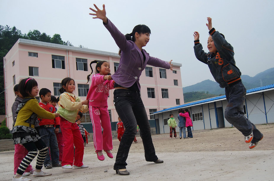 2009年5月4日,全國抗震英雄---陜西寧強黃壩驛鄉中心小學教師王敏,正在和學生們一起做老鷹抓小雞游戲,用歡笑聲驅散了地震帶來的陰霾。當日她榮獲第十三屆“中國青年五四獎。”
