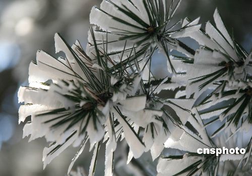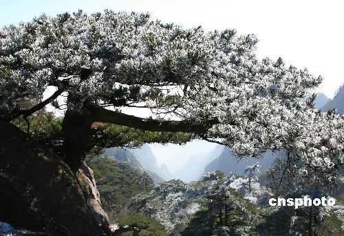 12月6日,安徽黃山風景區迎來今年入冬以來第一場雪。7日,雪止轉晴,氣溫驟降,黃山始信峰景區出現晶瑩剔透的雪松奇觀,“處處皆是琉璃界、時時身在水晶宮”的奇妙感覺,是一道獨具魅力的迷人景色,令游客嘆為觀止。中新社發 方也廣德 攝