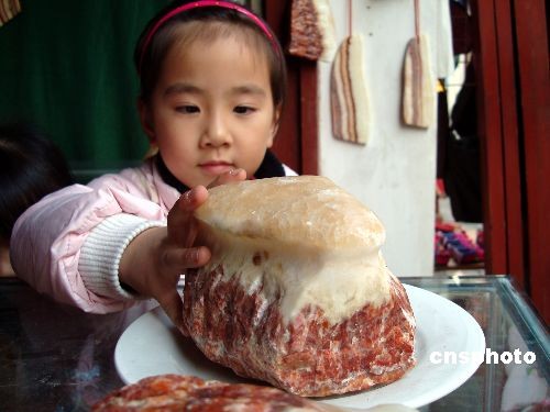 12月13日,在江蘇蘇州古鎮(zhèn)同里一家奇石店內(nèi)一種酷似豬肉的天然石頭吸引了眾多游客。據(jù)悉,這些“豬肉石”是在地質(zhì)運(yùn)動過程中與其他礦物質(zhì)接觸色化而成,不但長有“肉皮”,而且“瘦肉”和“肥肉”之分,呈現(xiàn)出多層次,十分逼真。中新社發(fā) 王建康 攝