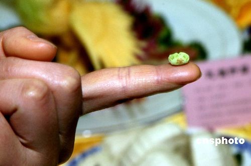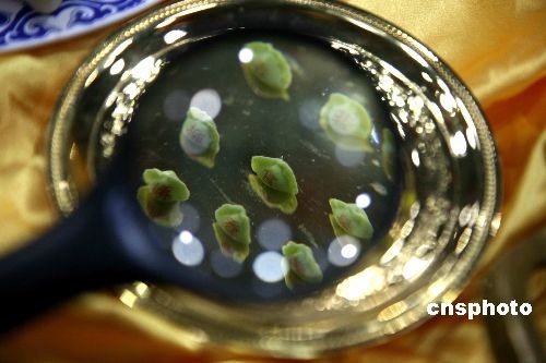 世界上最小的餃子有多大?12月20日上午,在濟南舉辦的第二屆齊魯民間膳食文化藝術(shù)節(jié)開幕式上,直徑僅有8毫米的齊魯珍珠餃亮相。餃子的餡由珍珠泉內(nèi)養(yǎng)殖的花蓮魚肉調(diào)成,每個上面還有文字,須通過放大鏡才能看清。中新社發(fā) 王輝 攝