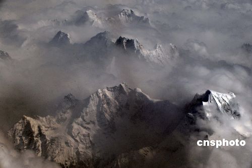 一月五日,青藏高原出現(xiàn)多云天氣,從高空俯瞰高聳云端的雪域高峰美如仙境。中新社發(fā) 廖攀 攝