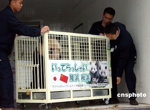 10月28日下午,經過近兩天長途飛行的旅日大熊貓雙胞胎“隆浜”和“秋浜”回到了故鄉成都,將在成都大熊貓繁育研究基地開始新的生活。按照國家規定,它們將在這個新家經過二至三個月的隔離檢疫以及飲食、氣候、環境等方面的調整,之后再與中外游客見面。中新社發 魏姝 攝