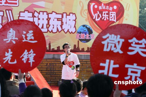 十一月三日適逢周末,北京奧運志愿心樂團走進正在火熱舉辦的秋季書市,為熱鬧非凡的書市增添了更多的激情。中新社發 任海霞 攝