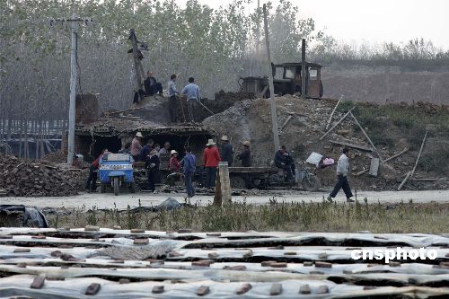 十一月五日,河南省淅川縣一處磚窯場工人正在生產磚坯。這家磚窯場曾經被查處,據一位民工透露,大約兩三個月前,這里仍有不少“黑工”在干活,現在都轉走了,只剩下少數本地民工。中新社發 慎重 攝