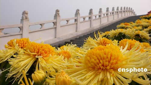 11月14日,河南開封市清明上河園里盛開的菊花。眼下,進入寒冷冬季,古城開封公園景點里的多種菊花依然鮮花盛開、耐寒傲霜,給冬日的人們帶來一股暖意。中新社發 凱楓 攝