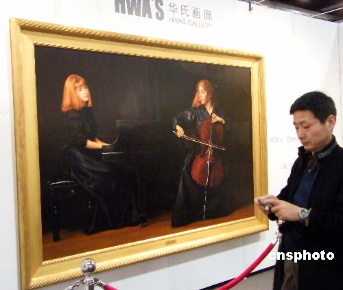 2007年11月15日,上海藝術(shù)博覽會在滬開幕。華氏畫廊帶來的陳逸飛代表作《二重奏》,再度引起國內(nèi)外機構(gòu)的收藏興趣。這是陳逸飛所有音樂題材肖像畫中尺幅最大的作品,其擁有方表示,這幅畫只展覽,不出售。 中新社發(fā) 井韋 攝