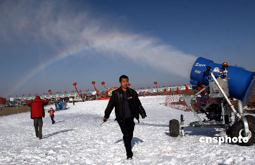 十一月十七日,新疆烏魯木齊某滑雪場工作人員正在操作造雪機,對即將投入使用的雪道進行人工造雪。當天,2007新疆冬季冰雪旅游啟動儀式在該滑雪場舉行。新疆冬季漫長,冰雪資源極為豐富,截至目前已建成二百一十多家滑雪場和冰雪娛樂點。中新社發 劉新 攝
