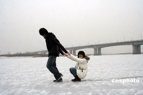 11月19日零時,黑龍江哈爾濱氣溫驟降,松花江段全面封江。當日13時,當地迎來第一場雪。中新社發 姚庭山 攝