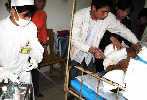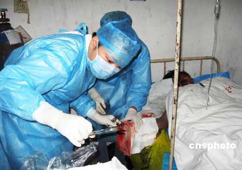 十一月二十四日,廣西北海市合浦縣一家據(jù)稱未經(jīng)當(dāng)局批準(zhǔn)開設(shè)的私營爆竹廠發(fā)生重大爆炸事故,目前已知至少有三人在是次事故中不幸罹難,另有十三人受傷,其中有多名傷員處于生命垂危狀態(tài)。圖為合浦縣人民醫(yī)院在緊急搶救傷員。中新社發(fā) 肖林 攝