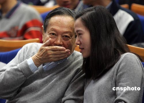 12月3日,數學大師陳省身逝世三周年紀念大會暨《陳省身與中國數學》新書首發儀式在天津舉行。諾貝爾獎獲得者、著名華人學者楊振寧攜妻子翁帆出席紀念活動。圖為楊振寧夫婦聆聽陳省身先生女婿、著名物理學家、香港科技大學校長朱經武院士的主題演講,演講題為《陳省身先生與我》。中新社發 祁小龍 攝