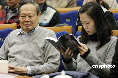 12月3日,數(shù)學(xué)大師陳省身逝世三周年紀念大會暨《陳省身與中國數(shù)學(xué)》新書首發(fā)儀式在天津舉行。陳省身先生好友、著名物理學(xué)家楊振寧攜妻子翁帆出席了新書首發(fā)儀式。中新社發(fā) 孟憲君 攝