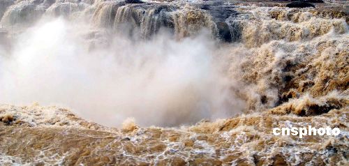 12月5日,黃河壺口瀑布迎來今年入冬后的第二個冬汛,雖然天氣很冷,還沒有出現(xiàn)冰掛,但水的氣勢很大,瀑布很壯觀,許多游人都趕來欣賞這壯觀的景象。中新社發(fā) 張旦 攝