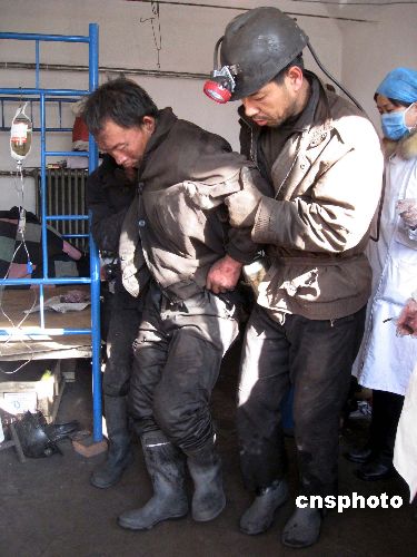 12月6日凌晨零時左右,山西省臨汾市洪洞縣瑞之源煤業有限公司(位于洪洞縣左木鄉紅光村原新窯煤礦)井下發生瓦斯爆炸事故,救護隊正在井下緊張搶救,據初步核查,已有40人遇難,13人被救出后送往醫院救治,尚有74人被困井下。圖為一名被救出的礦工接受身體檢查。中新社發 前衛 攝