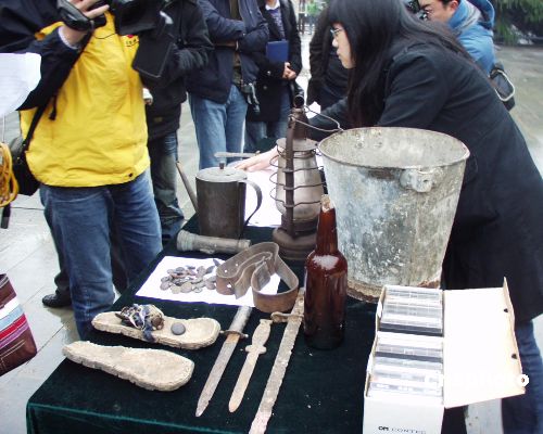 十二月六日,侵華日軍南京大屠殺遇難同胞紀念館獲贈一批重要文物史料,其中有相當一部分與南京大屠殺史直接相關(guān),如十八盒南京大屠殺幸存者原始證言錄音帶,當時中國守軍使用的電筒、帽徽、馬燈,日軍焚尸滅跡用的油桶、日軍軍刀等等。據(jù)悉,近三年來該紀念館共收到海內(nèi)外各界捐贈文物史料共七千九百多件(組),大大豐富了館藏。中新社發(fā) 王國安 攝