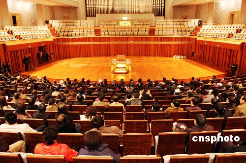 12月16日消息,中國國家大劇院即將迎來開門的首場新年音樂會,世界著名指揮大師小澤征爾等人將親臨演出。國家大劇院副院長鄧一江透露,將于2008年1月1日上午9時30分出售當天站票,票價僅30元人民幣。此次實施站票制度亦是國際慣例。圖為藝術家參觀國家大劇院音樂廳。中新社發 鄭雄增 攝