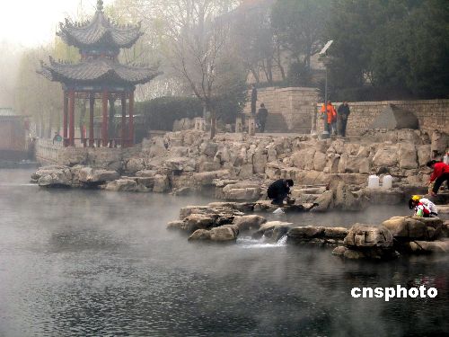 由于低溫和濕潤的空氣,12月20日,山東濟南眾泉出現“云霧潤蒸”景象,大片水汽從泉水和護城河水面升起。據悉,該景觀一般出現在冬季特殊天氣。中新社發 周青先 攝