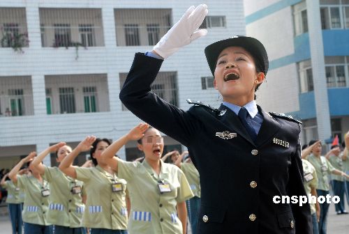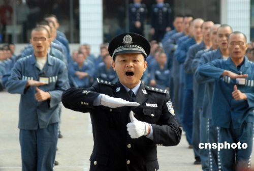 2007年12月26日,海南省瓊山監獄舉行服刑人員“心靈手語操”比賽,7支代表隊共700多名服刑人員參賽,他們以此特別方式迎接即將到來的新年。服刑人員在手語操比賽的表演中,得到傳統文化的熏陶,增強了積極改造的信心。中新社發 善平 攝