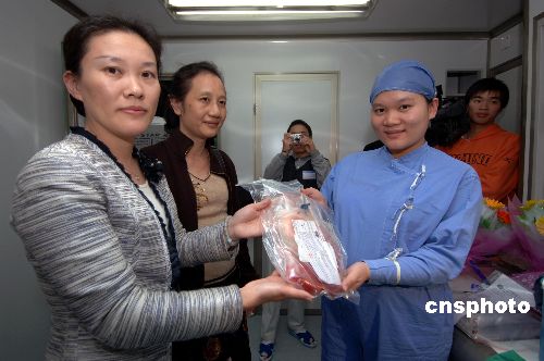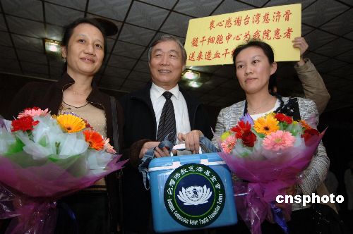 十二月二十八日晚八時左右,福建醫科大學附屬協和醫院的醫務人員,從臺灣花蓮途經臺北、香港、福州輾轉九個小時,將臺灣同胞捐贈的造血干細胞送達福州醫院,并于當晚九時左右,成功注入福建白血病患者俞昌盛體內。中新社發 王東明 攝