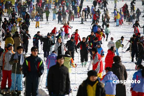 12月31日,北京市民在北京懷北國際劃雪場劃雪玩耍。當天是2007年最后一天,許多北京市民來到京郊劃雪場感受劃雪魅力,迎接新年到來。中新社發 卜向東 攝