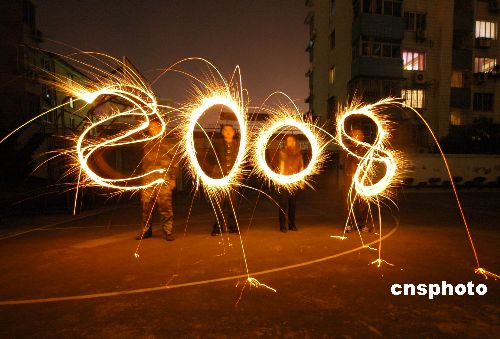 2007年12月31日,浙江臺州市椒江邊防大隊官兵用焰火在空中劃出“2008”字樣,表達對新年到來的祝福。中新社發 郟策 攝