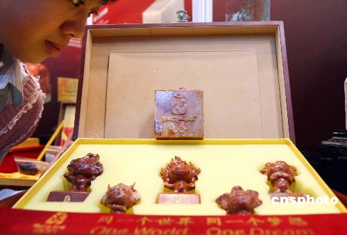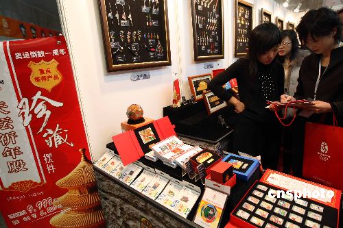 一月八日,特許商品定貨會在北京隆重舉行,北京奧組委授權的特許生產企業展示了近千種最新設計、生產的奧運特許商品,主要包括各類主題徽章、貴金屬紀念章、工藝品等。一連三日的培訓會為零售企業搭建了一個交流的平臺。截止目前為止,北京奧組委授權的特許生產商已達到六十八家,產品囊括十四大類,五千款商品。中新社發 任海霞 攝