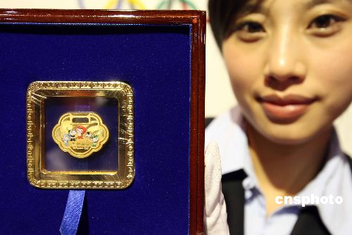 一月十二日,由北京奧組委授權的特許商品奧運寶寶純金純銀鎖形紀念章與收藏愛好者見面,奧運冠軍顧俊、王麗萍、李對紅等現場助陣。中新社發 任海霞 攝
