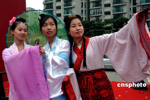 一月十八日,福州漢服愛好者正在表演情景劇。當日,福州漢唐文化藝術中心隆重開業,熱衷追逐古典文化的福州漢服天下工作人員上臺表演助興。中新社發 王東明 攝